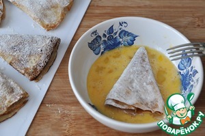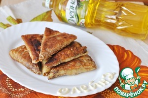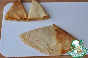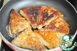 Кладём блинные "треугольники" и обжариваем до румяной корочки с обоих сторон.