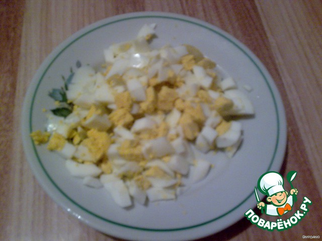 Яички порезать.