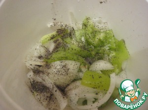 Смешиваем их в пиале, солим и добавляем молотый имбирь, перец.