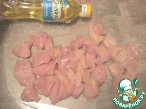 Куриное филе вымыть, обсушить, нарезать на кусочки