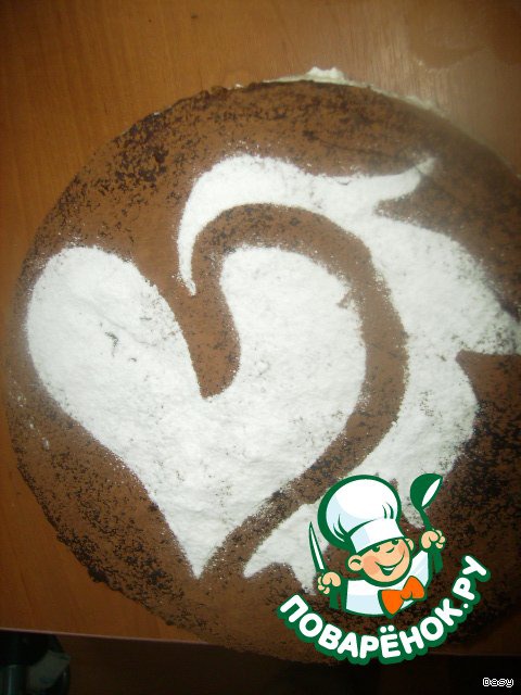 Торт вырезать из формы и украсить сливочным кремом или просто посыпать какао и сахарной пудрой, а можно просто шоколадом, но это, как оказалось, уже перебор.