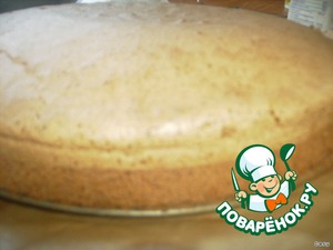 # Готовый корж разрезать на 2 части и пропитать сиропом, я готовила детям, поэтому я брала готовый шоколадный напиток типа несквика 200 гр., а в оригинале для пропитки берут чашку готового кофе плюс карамельный или типа такого экстракт.