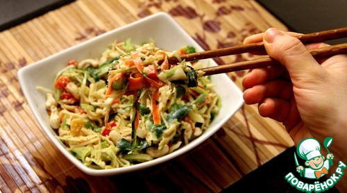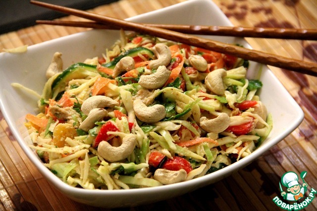 Тайская кухня богата ароматами и необычными сочетаниями. За это я ее и люблю. Предлагаю вам попробовать один из, на мой взгляд, наивкуснейших салатов тайской кухни. Очень легок в приготовлении и богат витаминами. Угощайтесь.