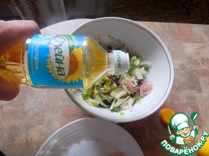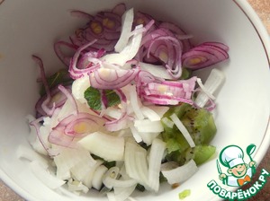 Следом мелко нарезанный лук.