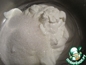 Готовим сметанный крем. Сахар смешиваем со сметаной комнатной температуры и ванилином.