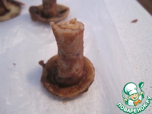 Для ножки небольшой кусочек блина скручиваем в рулет, склеиваем глазурью.