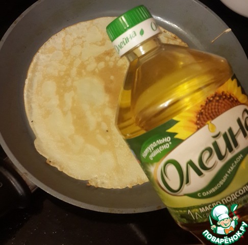 Смазывая сковороду маслом "Олейна" при помощи кисточки, испеките румяные блины.