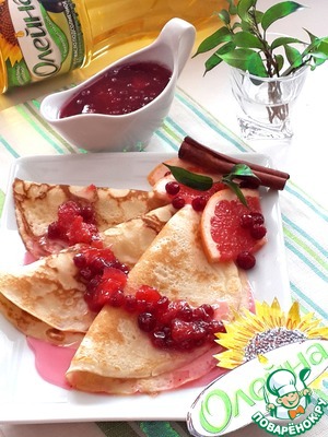 Рецепт «Блины с грейпфрутово-брусничным соусом»: