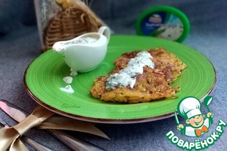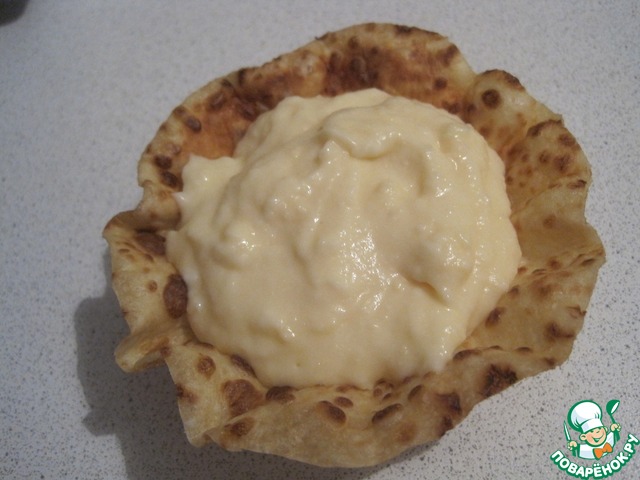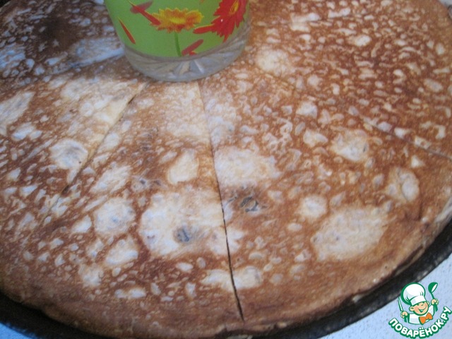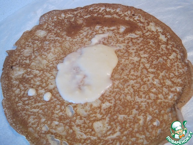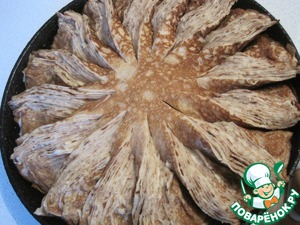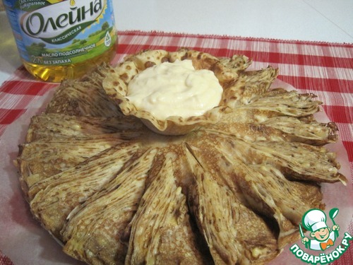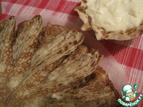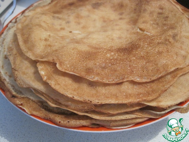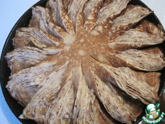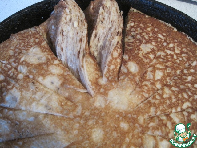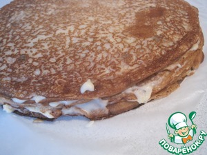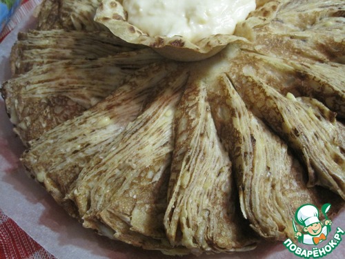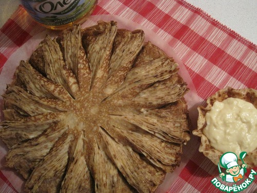 Рецепт «Блинный пирог с сырным соусом»: