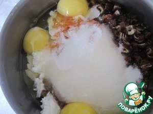 • Яйца с сахаром взбиваем до увеличения в объеме 2-2, 5 раза, добавляем муку.