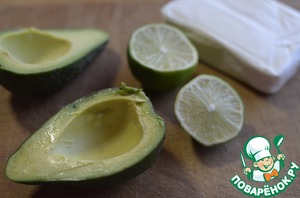 Авокадо обескостить, при помощи столовой ложки вынуть мякоть. Из половинки лайма выжать сок.