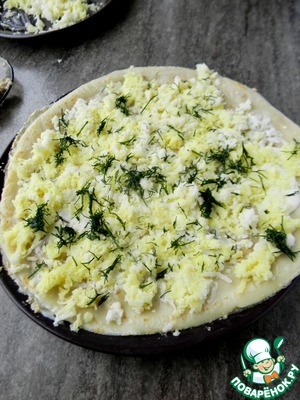 Посыпать картофелем и укропом. -