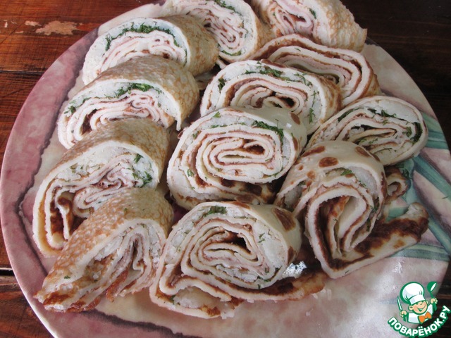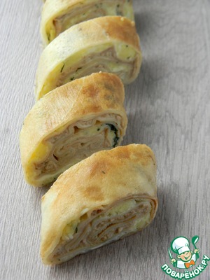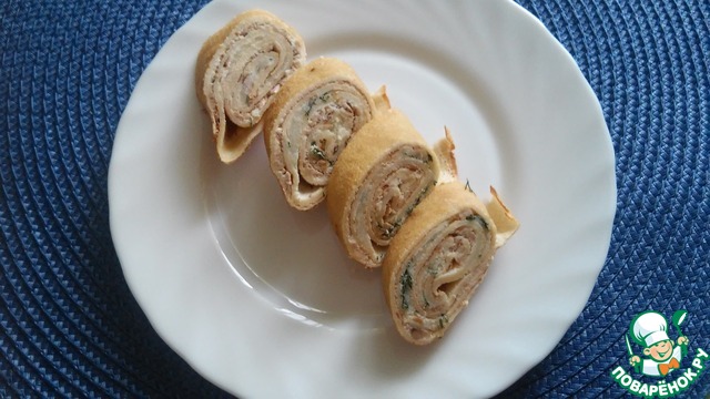 Рецепт «Блинный рулет с печенью трески и картофелем»: