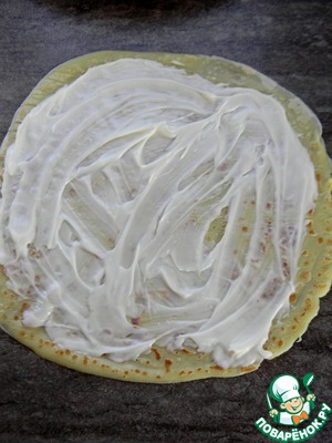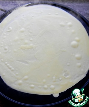 • Можно испечь блинчики по любимому рецепту, главное, чтобы они были тонкие и нежирные.
