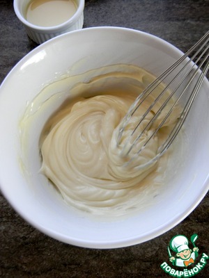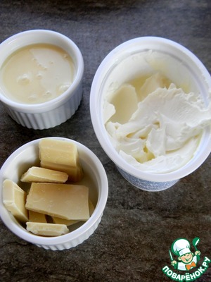 • В миску выложить сыр, сгущенное молоко и растопленный шоколад.