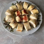 Машенька, бесподобные, нежные рулетики! Настоящие пирожные! Такое наслаждение с ними попить чайку! Блинчики у меня были заварные, на кефире, а начинка - строго по рецепту. Огромное спасибо тебе, Машенька, за интересную идею и прекрасный рецепт!
