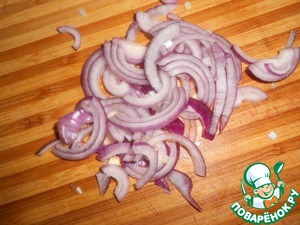Для начинки красную луковицу почистить, нарезать полукольцами.