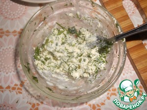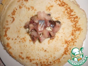 Рецепт «Блинные мешочки с зеленым маслом и сельдью»: