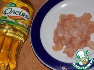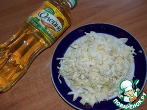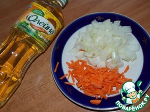 Лук и морковь обжарить в растительном масле ТМ Олейна до золотистого цвета, добавить филе, жарить 5-7 минут.