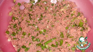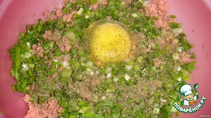 Измельчить лук, добавить специи и сырое яйцо