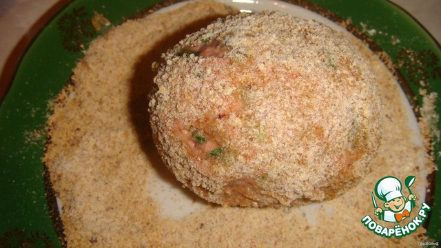 Затем в панировочных сухарях, смешанных с мукой