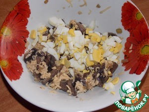 Грибы и лук нарезать, обжарить на растительном масле ТМ Олейна до готовности. Посолить и поперчить по вкусу.
