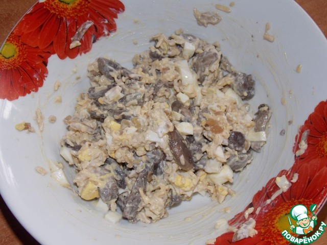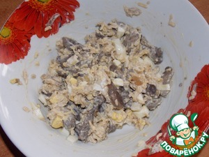 На блинчик выложить по 1 ст. л. начинки. Свернуть.