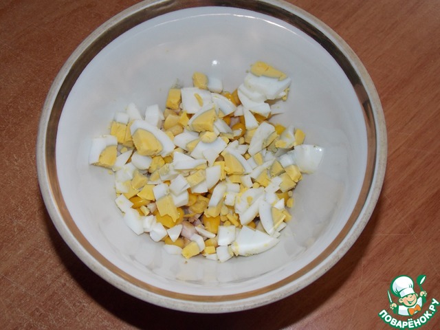 И яйцо, порезанное мелким кубиком.