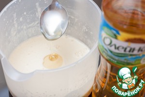 Итак, первым делом подогреваем молоко примерно до 40С, переливаем его в в глубокую емкость и добавляем яйцо, соль и сахар (если начинка будет несладкая, сахар не добавляйте). Взбиваем все при помощи миксера до воздушной пены. Муку просеиваем, добавляем в нее соду и, частями добавляем ее к молочной смеси, перемешивая кратко и на низкой скорости. Важно не взбивать долго блинную смесь после того, как добавили муку, за счет соды в тесте образуются пузырьки воздуха, которые затем и дадут очаровательные дырочки в наших блинах. Если тесто перемешивать долго, воздух уйдет из теста и оно станет тяжелым и плотным. Как только добились однородной структуры, выключайте миксер. А теперь влейте в тесто растительное масло без запаха - ваши блинчики будут легко отделяться от сковороды. -