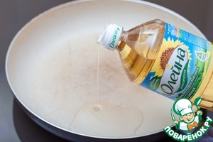Хорошо накалите сковороду и, чтобы первый блин не получился комом, налейте на нее 1-2 ч. л. растительного масла. Все, можно начинать выпекать блины. Для последующих блинов масло уже можно не наливать, оно есть в тесте.