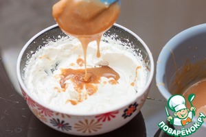 Взбейте очень холодные сливки и, не выключая миксер, добавьте к ним загустевшую охлажденную карамель, перемешайте до однородности. Оставьте 2-3 ст. л. карамели, чтобы полить сверху готовый торт.