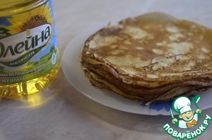 Выпекала на растительном масле "Олейна". Для запеканки нам потребуется около 10-15 блинов.