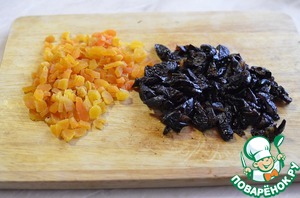 Чернослив и курагу вымыть, обсушить и порезать небольшими кубиками.