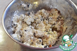 Творог с сухофруктами хорошо перемешиваем. Для лучшей однородности можно пробить погружным блендером.