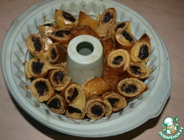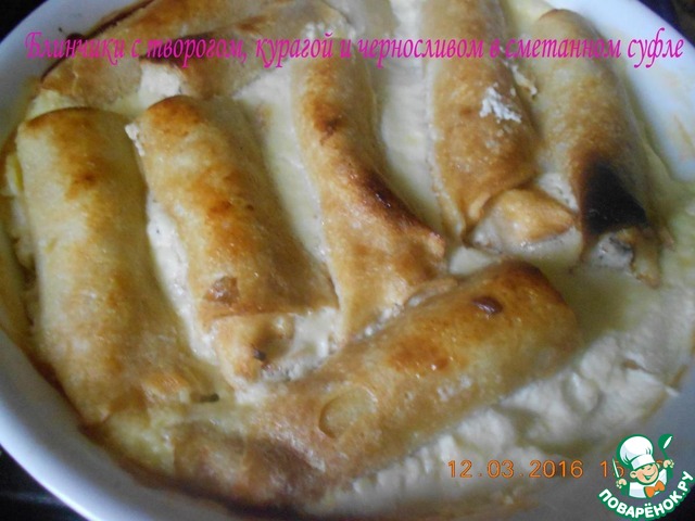 Рецепт «Блины с творогом в сметанном суфле»: