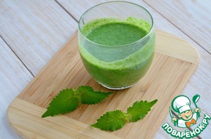 Пучок мяты промыть, опустить его в кипяток на секунд 15 Затем отделить листья от стеблей, промокнуть бумажным полотенцем. Листья выложить в емкость, добавить 2 ст. л. мороженого, шпинатное пюре и пробить блендером.
