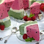Предлагаю Вам торт-мороженое "Арбуз". Думаю что "кусочек" лета придется многим по вкусу в любое время года. Такой десерт украсит любой праздничный стол. Идею мороженого "Арбуз" я позаимствовала у Лены Ивановой, изменив немного рецепт.