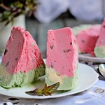 [+2]У меня же, что-то не задалось с мороженным, к сожалению. Очень сложно мне было его уложить в виде арбуза, не слушалось оно меня. То было слишком жидко, то слишком замерзало. Я грешу на сливки, возможно попались порошковые, бывает у нас такое. В итоге, мороженое замерзло совсем и, на мой вкус, получилось не сливочное мороженое, а мороженое водянистое. Я смотрю у девочек все так красиво получилось, поэтому я и взялась за его приготовление. К сожалению, я потратила больше времени, чем рассчитывала и вкусовой результат не впечатлил (именно меня), видимо это не мой рецепт. Не зря говорят, на вкус и цвет....Но, пока не приготовишь, тяжело определить.