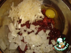 Добавить яйцо+картофель+лук+соль+перец, перемешать