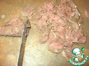 Нарезать отварную индейку