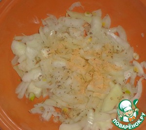 Добавить к луку соль, сухой имбирь и прованские травы. Перемешать.