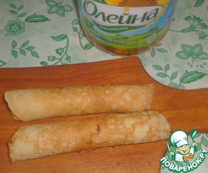 Приготовить тесто для блинов из молока, яйца, сахара, соли, разрыхлителя теста и муки. В конце добавить в тесто подсолнечное масло ТМ Олейна и испечь блины.