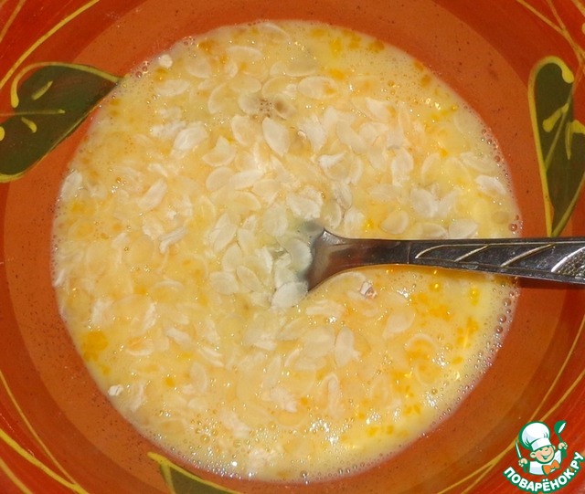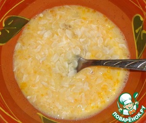 Смешать яйца, молоко и рисовые хлопья. Это заливка для запеканки.
