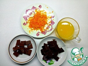 С двух апельсинов снять цедру и измельчить, из всех апельсинов отжать сок. Шоколад поломать на кусочки.