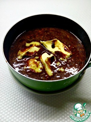 Снять с плиты, добавить масло и размешивать пока масло не растворится.