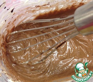 Теперь добавляем его в масляную смесь (не переставая взбивать), добавляем кофе.