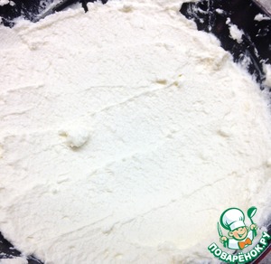 Теперь смешиваем сахар, творог и ванилин и взбиваем миксером. Добавляем изюм и перемешиваем.