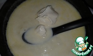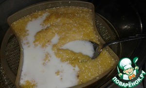 Кукурузную кашу отварить до готовности, добавить сливки, перемешать и накрыть крышкой