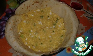 Для второго варианта форму выстелить блинчиками так, чтобы края свисали, выложить начинку