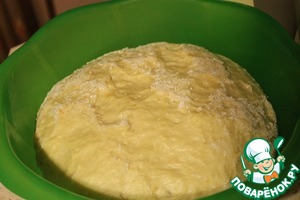 Постепенно всыпать оставшуюся просеянную муку. Вымешивать тесто 5-10 минут. Тесто должно получиться мягким и не липнущим к рукам. Переложить его в чистую миску, накрыть полотенцем и оставить в теплом месте на 1,5-2 часа.